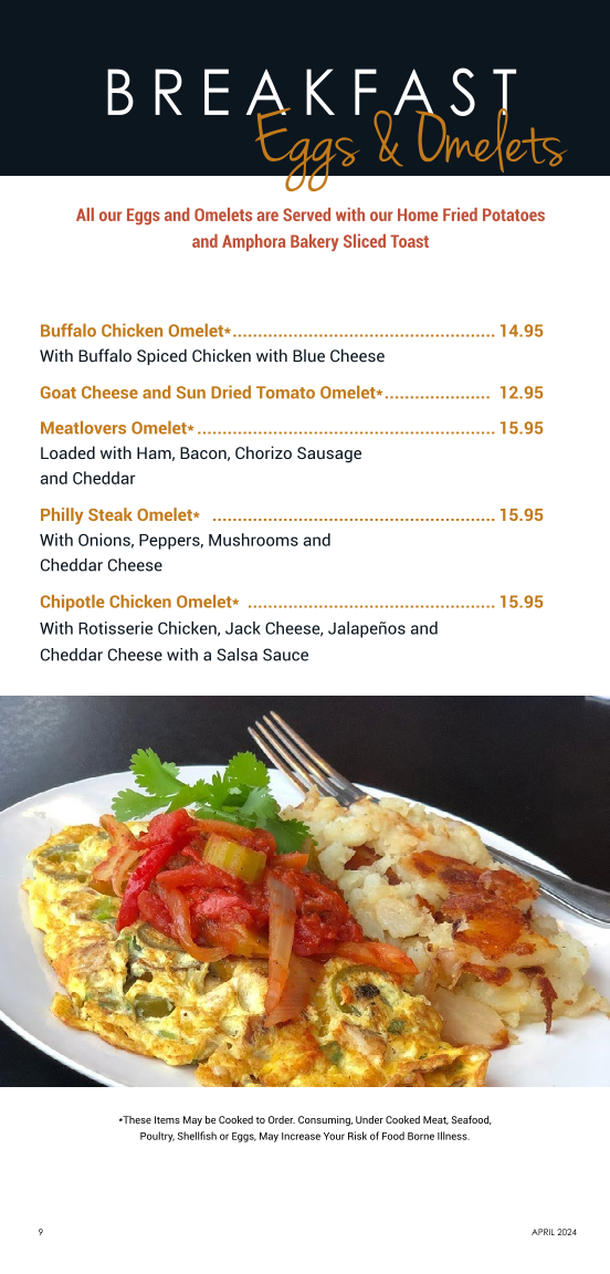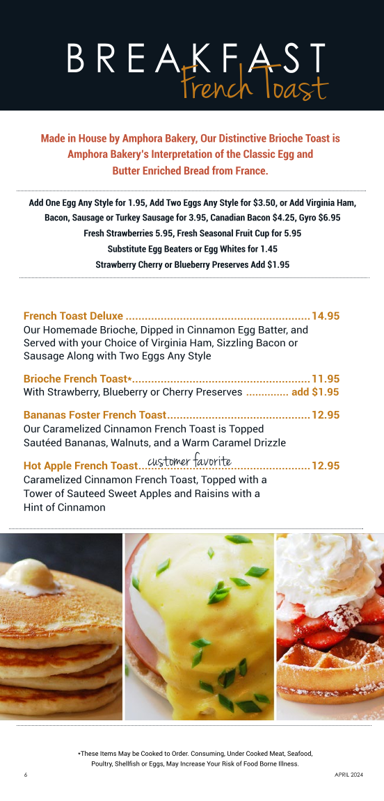 Served with our Home Fried Potatoes and Amphora Bakery Sliced Toast / Additional ingredients 95 cents each